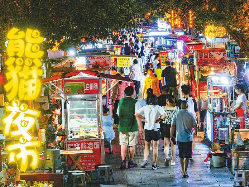 夜色中,熊貓夜市的100余個攤位陸續(xù)支起,食物的香味四下彌漫,居民游客陸續(xù)到來,或穿梭游走,或駐足光顧。到第二天一早,這段道路又變得寬敞干凈,路面幾乎看不出昨夜煙火升騰的痕跡。