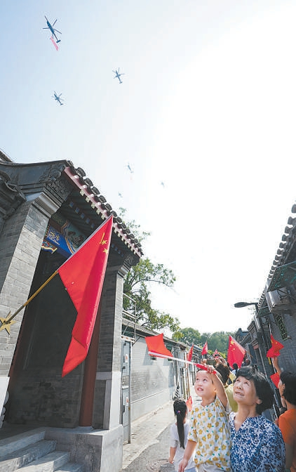 9月3日,紀念中國人民抗日戰(zhàn)爭暨世界反法西斯戰(zhàn)爭勝利80周年大會在北京天安門廣場隆重舉行??罩刑蓐狅w越北京城上空,引來萬眾矚目,歷史的感知、未來的期待與民族的自豪感,在這一刻凝聚。先進威武的戰(zhàn)機梯隊凌云九天,與多座京城的地標建筑同框,勾勒出震撼人心的雄壯畫面。