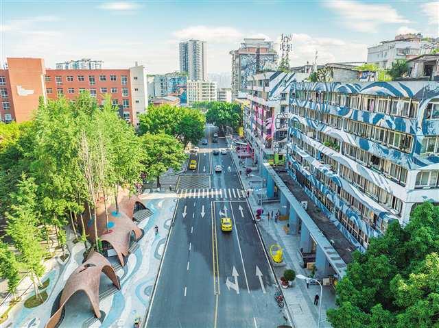 走進(jìn)黃桷坪涂鴉街,畫筆正點綴著老墻,曾經(jīng)的舊巷在色彩中蘇醒。通過“藝?yán)L黃桷”項目,居民和藝術(shù)家們共同揮毫,將樓宇化作巨幅畫布,讓這里從“想涂就涂”變成了人人珍惜的藝術(shù)畫廊。去年以來,九龍坡區(qū)堅持“景在城中、城在景中”,創(chuàng)新探索“三清兩整三補”工作法,街道綠化更新、道路景觀提升、城市地標(biāo)煥新同步推進(jìn)。桃花溪、彩云湖等重點區(qū)域系統(tǒng)整治,水清岸綠、岸線明亮,生態(tài)與景觀交織成畫。黃桷坪涂鴉藝術(shù)街區(qū)、主次干道綠化彩化工程,成為展現(xiàn)城市魅力的“城市名片”。