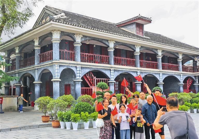 10月8日,貴州省遵義市遵義會議會址,游客在合影留念。國慶中秋假期,紅色旅游持續(xù)升溫。袁福洪攝(中經(jīng)視覺)