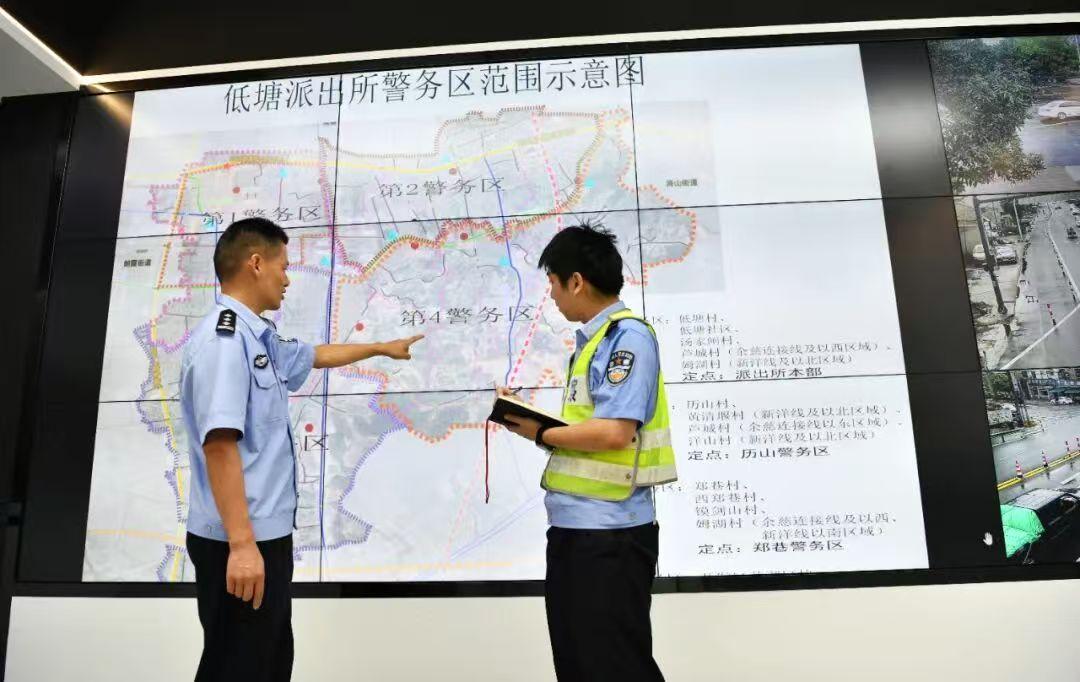 走進(jìn)低塘派出所綜合指揮室,科技感撲面而來。巨大的電子屏幕上,“指揮一張圖”清晰顯示著所有路面警力和巡邏車輛的實(shí)時(shí)位置。