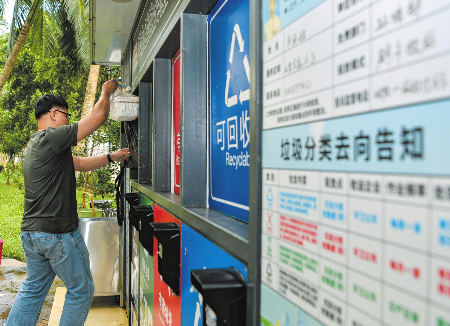 “您在家分好類了嗎,請先刷卡再投放?!?0月15日上午,海口四季華庭小區(qū)1期A區(qū)的垃圾分類屋前,督導(dǎo)員韋麗娟耐心地提醒著每一位前來投放垃圾的住戶,引導(dǎo)大家刷卡完成規(guī)范投放。