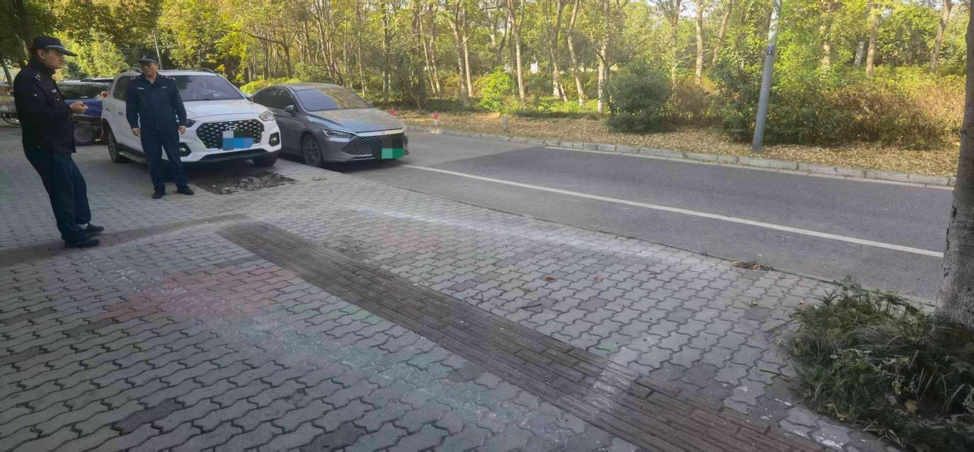 針對(duì)這一問(wèn)題,新碶街道執(zhí)法人員曾多次到現(xiàn)場(chǎng)開展違停抄告工作,但由于該區(qū)域停車需求與車位供給矛盾突出,亂停現(xiàn)象反復(fù)出現(xiàn),治理效果未能達(dá)到預(yù)期,為破解該路段交通治理難題,執(zhí)法人員對(duì)區(qū)域內(nèi)停車設(shè)施及車輛停放情況進(jìn)行全面細(xì)致排查。在排查過(guò)程中,執(zhí)法人員發(fā)現(xiàn)一處人行道車位存在明顯異?!撥囄痪€繪制粗糙、規(guī)格與正規(guī)市政車位存在差異,且未在市政部門停車泊位備案系統(tǒng)中登記。經(jīng)過(guò)進(jìn)一步調(diào)查核實(shí),最終確認(rèn)該車位為私人違規(guī)繪制的“虛假車位”?!罢沁@個(gè)虛假車位的存在,誤導(dǎo)了部分車主在此停車,進(jìn)而引發(fā)了一系列亂停問(wèn)題,尤其是對(duì)盲道的占用,嚴(yán)重侵犯了特殊人群的合法通行權(quán)益?!眻?zhí)法人員解釋道。