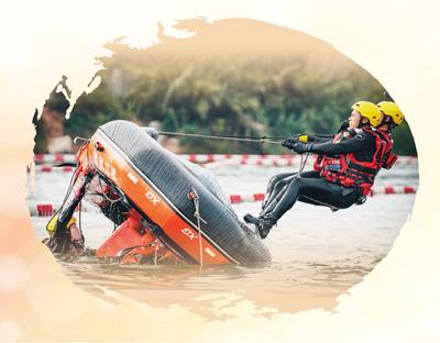 浙江省杭州市消防救援支隊消防員開展水上課目演練。陳永杰攝(人民視覺)