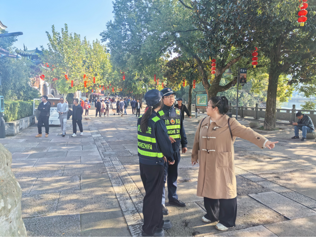 針對預(yù)判到的秋假旅游高峰,執(zhí)法隊提前部署、周密安排,制定專項保障方案。通過增派執(zhí)法力量,在景區(qū)主要入口、停車場、熱門景點及商業(yè)街區(qū)等重點區(qū)域?qū)嵭小岸c值守+機動巡查”相結(jié)合的模式,實現(xiàn)管理全覆蓋、響應(yīng)無延遲。同時,加強與公安、交警等部門的聯(lián)動協(xié)作,構(gòu)建信息互通、力量互補的協(xié)同機制,為應(yīng)對各類突發(fā)情況、維護游覽秩序奠定了堅實基礎(chǔ)。