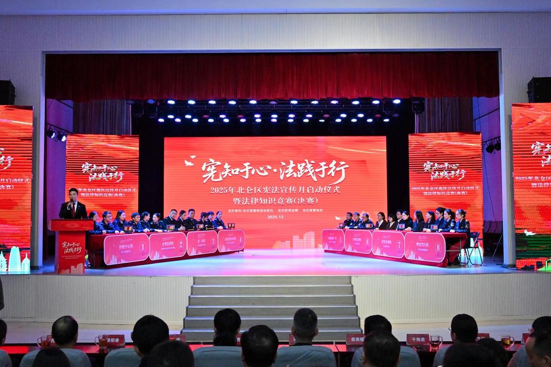 “3、2、1,開始搶答!”12月2日下午,位于寧波市北侖區(qū)的張人亞會堂內(nèi),隨著主持人一聲令下,搶答器提示音此起彼伏,現(xiàn)場氣氛瞬間被推向高潮。這是2025年北侖區(qū)憲法宣傳月活動啟動暨“憲知于心?法踐于行”法律知識競賽決賽的現(xiàn)場。8支從初賽中脫穎而出的代表隊在這里展開巔峰對決,也為該區(qū)豐富多彩的憲法宣傳系列活動拉開了序幕。