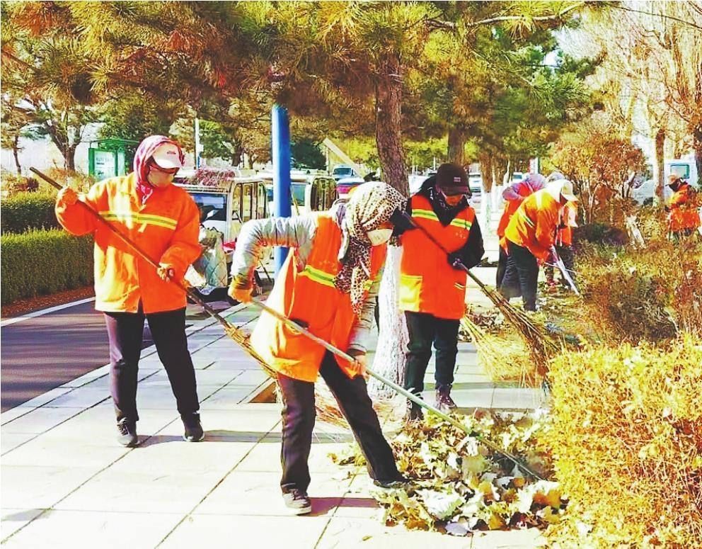 秋冬時(shí)節(jié)落葉堆積,喀左縣環(huán)衛(wèi)工人加緊清理,維護(hù)市容市貌。 賀培培 攝