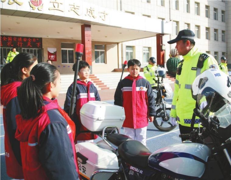 喀左縣公安局交管大隊(duì)工作人員為學(xué)生講解交通安全知識(shí)。 邰闖 攝