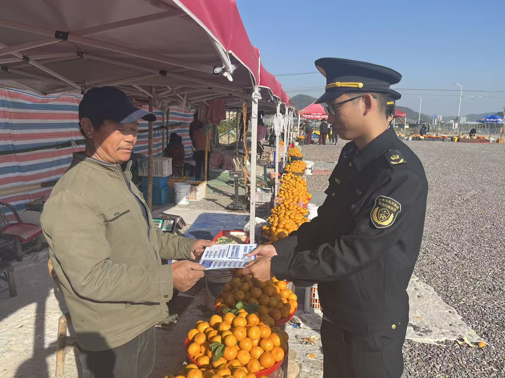 執(zhí)法人員向果農(nóng)開展安全宣導(dǎo)