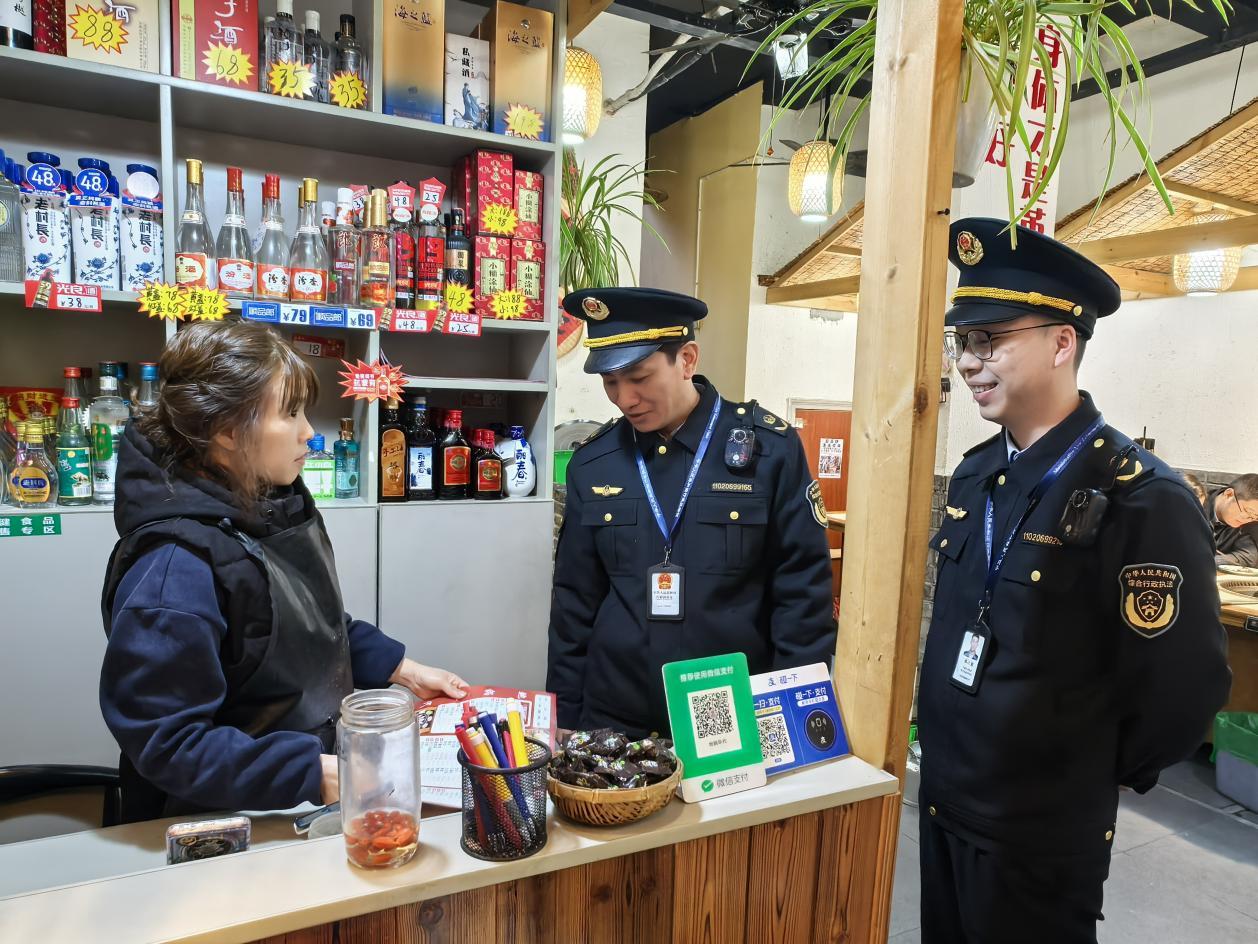 執(zhí)法人員向商家宣導(dǎo)“店鋪積分制”