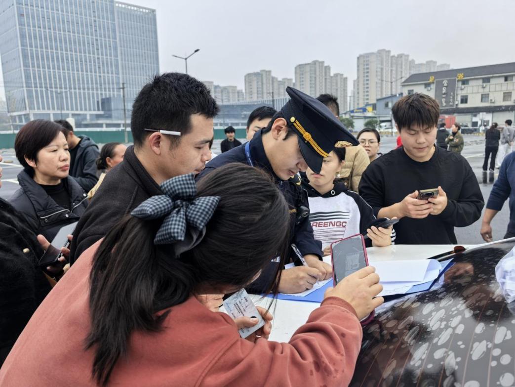 在大成東路某項目工地,兩位執(zhí)法人員登上建筑垃圾清運(yùn)車的駕駛室,身份悄然轉(zhuǎn)換——在這一天,他們是“跟車人”,也是“體驗者”。從出土點的秩序維持,到離場前高壓水槍下的精細(xì)沖洗;從地磅前對載重數(shù)字的凝神核對,到一路跟隨至消納場的安全抵達(dá)——他們以第一視角,完整走完了建筑垃圾從產(chǎn)生到處置的全鏈條。