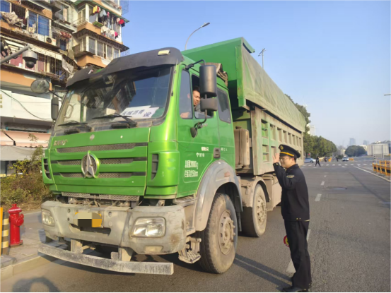 嚴(yán)格執(zhí)法提升運(yùn)輸規(guī)范。始終堅(jiān)持依法行政、公正文明執(zhí)法,嚴(yán)格依照相關(guān)法律法規(guī)和執(zhí)法流程開(kāi)展工作。執(zhí)法人員重點(diǎn)檢查車輛車容車貌、證件手續(xù)、車輪帶泥等情況,并對(duì)運(yùn)輸路線、時(shí)間等進(jìn)行細(xì)致核驗(yàn),對(duì)潛在問(wèn)題現(xiàn)場(chǎng)做好預(yù)警提醒,從源頭杜絕違法違規(guī)運(yùn)輸行為。