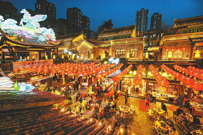 1月15日,成都東門市井2026年“龍馬精神·市井民俗燈會(huì)節(jié)”亮燈,吸引游客前往。 周巧旻 攝(C視覺(jué))