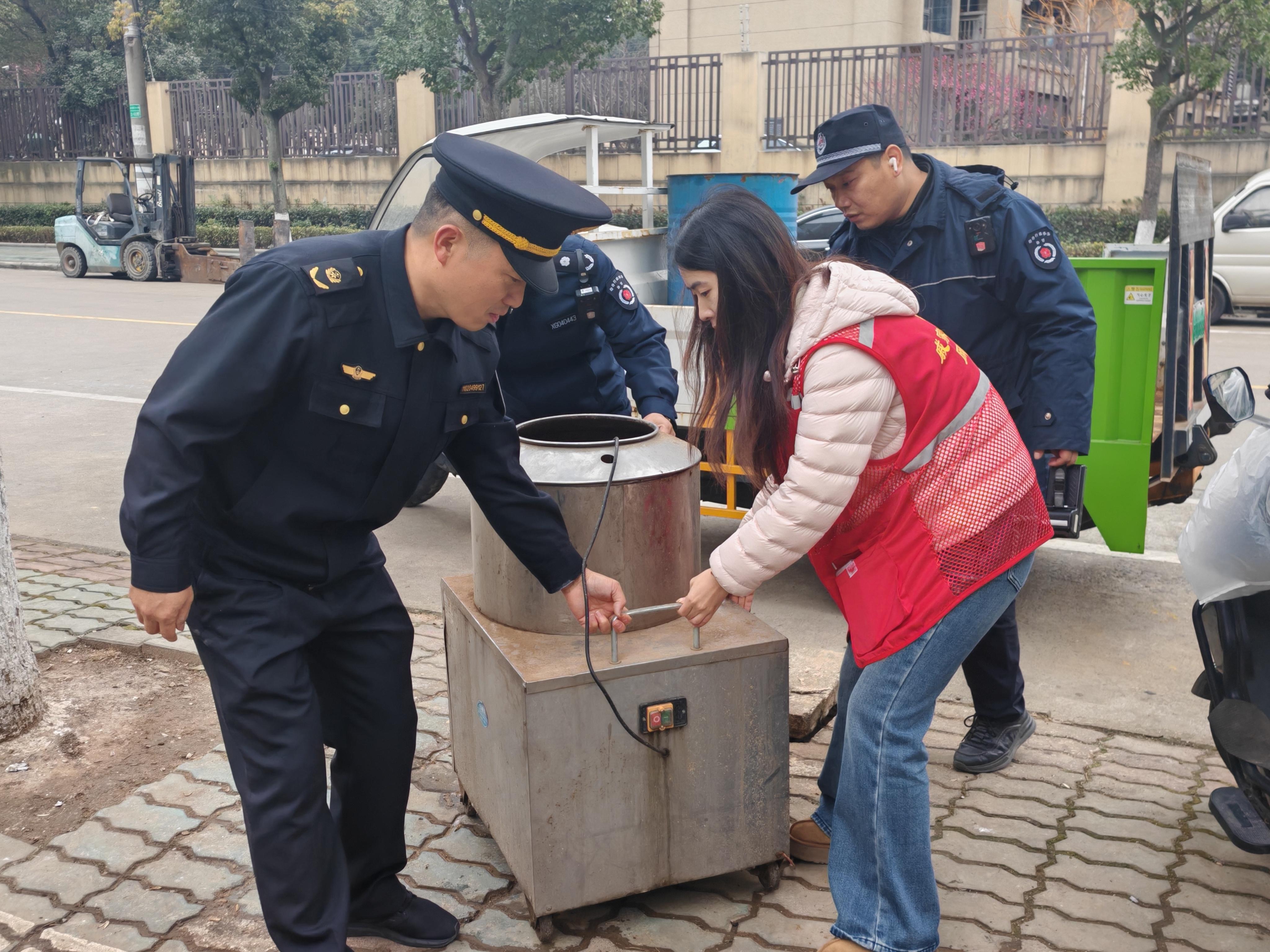 薄弱部位“大掃除”。小區(qū)退紅位置常常是亂堆放、亂停車的重災(zāi)區(qū),破壞綠化、隨地垃圾問題更是屢見不鮮,戚家山港城嘉苑小區(qū)退紅位置便有此“困擾”。由于該小區(qū)物業(yè)正在走退出程序,退紅位置的日常管理近乎停擺。為干凈清爽迎新年,中隊(duì)聯(lián)合鷹山社區(qū)提前排摸梳理問題點(diǎn)位,逐一走訪相關(guān)商戶,耐心勸導(dǎo)商戶對各自物品進(jìn)行清理,同時執(zhí)法人員與社區(qū)網(wǎng)格員、轄區(qū)志愿者一同對衛(wèi)生死角進(jìn)行徹底“大掃除”?!斑@么一打掃,看著確實(shí)舒服多了,以后我也會自覺做好‘門前三包’,共同把這份整潔保持?。 苯?jīng)營汽修店的王先生表示。