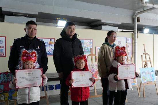 “這幅畫講的是不能隨意點(diǎn)擊陌生紅包鏈接,不然很容易被騙走錢?!毙∽髡呦虼蠹医榻B。小朋友們在活動(dòng)上舉辦的反詐童“畫”展,用稚嫩畫筆展示了孩童視角對(duì)防詐的理解。
