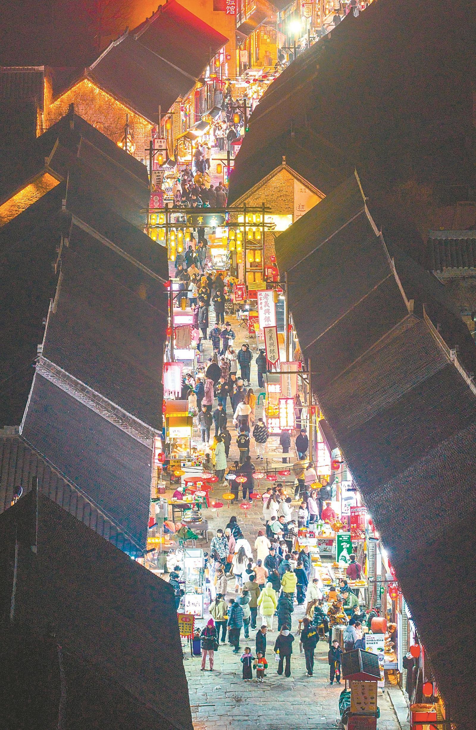 2月1日,淮北市濉溪縣,游客在石板街逛古城、品美食、打卡游玩。張偉 攝