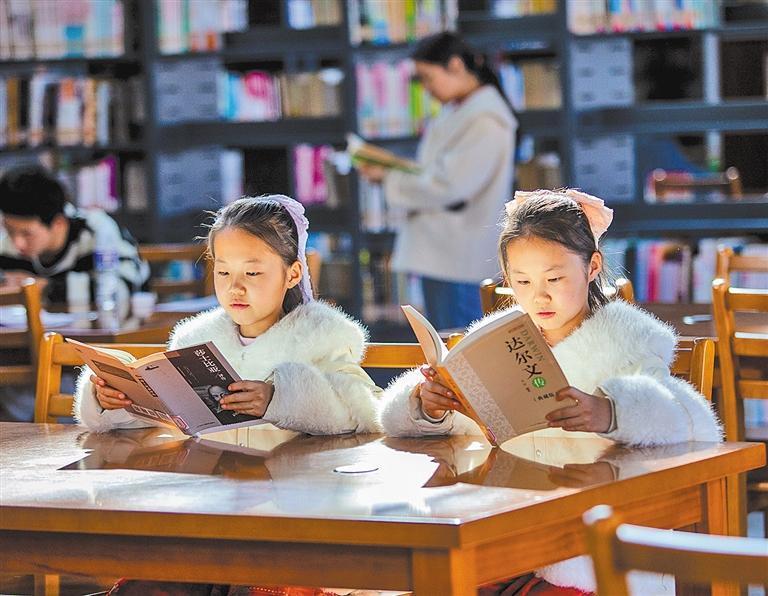 2月20日,小朋友在山東省淄博市高青縣圖書館內(nèi)看書。張維堂攝(中經(jīng)視覺(jué))