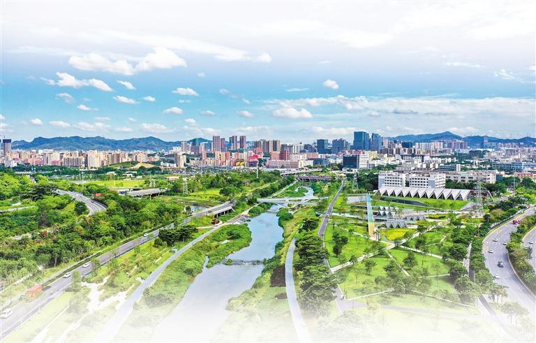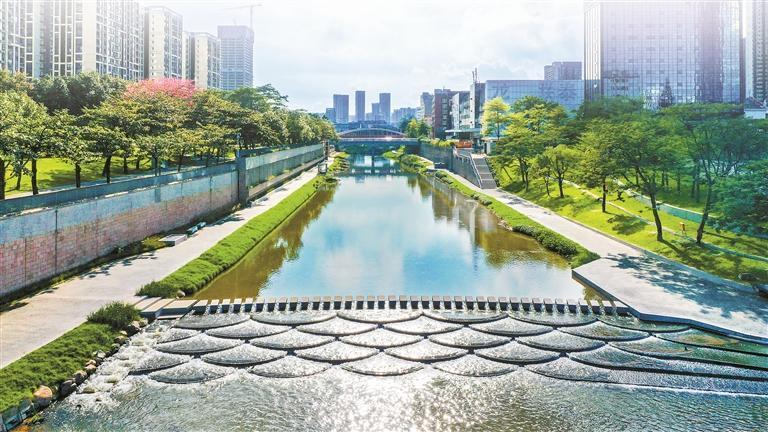 水環(huán)境改善方面,堅持“一河一策”系統(tǒng)治理,綜合運(yùn)用管網(wǎng)完善、廠站擴(kuò)能、問題排口精準(zhǔn)治理、生態(tài)補(bǔ)水等措施,21個國省考斷面連續(xù)三年達(dá)優(yōu)率100%,全市優(yōu)良河長占比由2020年的22.9%提升至90.1%。水清岸綠、魚翔淺底,茅洲河、龍崗河、觀瀾河、大沙河等多條碧道環(huán)境優(yōu)美,成為市民喜愛的“網(wǎng)紅”親水休閑打卡點。