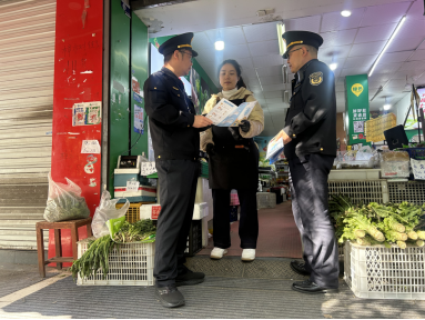 執(zhí)法人員向商戶進(jìn)行普法宣傳