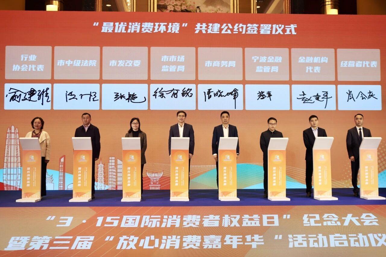 活動(dòng)現(xiàn)場(chǎng)發(fā)布了2025年度消費(fèi)維權(quán)報(bào)告,增補(bǔ)市發(fā)展改革委、市司法局、市市場(chǎng)監(jiān)管局3名委員;聯(lián)合委員單位發(fā)布年度消費(fèi)維權(quán)十大典型案例和十大訴訟案例;舉行了“最優(yōu)消費(fèi)環(huán)境”共建公約簽署儀式和“誠(chéng)信經(jīng)營(yíng),放心消費(fèi)”行動(dòng)倡議發(fā)布;表彰了2025年度消費(fèi)糾紛多元化解工作成績(jī)突出集體、個(gè)人和成績(jī)突出調(diào)解員,并啟動(dòng)第三屆放心消費(fèi)嘉年華活動(dòng)。寧波市人大常委會(huì)黨組副書(shū)記、副主任、市消保委主任華偉出席活動(dòng)并頒獎(jiǎng),副市長(zhǎng)金珊出席活動(dòng)并致辭頒獎(jiǎng)。