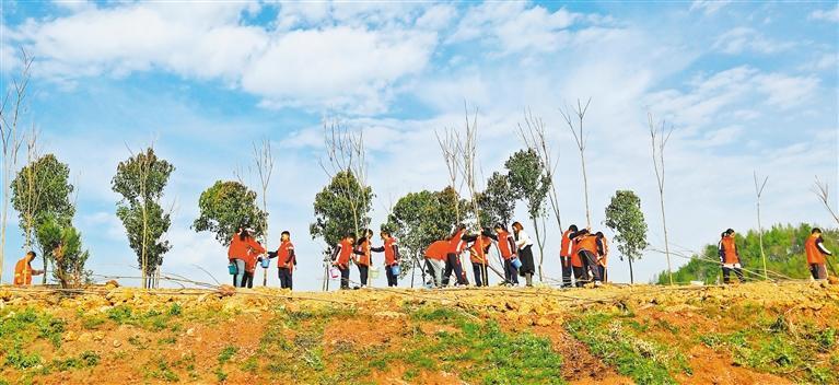 3月12日,重慶市萬(wàn)盛經(jīng)開(kāi)區(qū)開(kāi)展2026年春季義務(wù)植樹(shù)活動(dòng),人們?cè)诨纳狡律戏N下香樟、烏桕等樹(shù)苗。王瀘州攝(中經(jīng)視覺(jué))