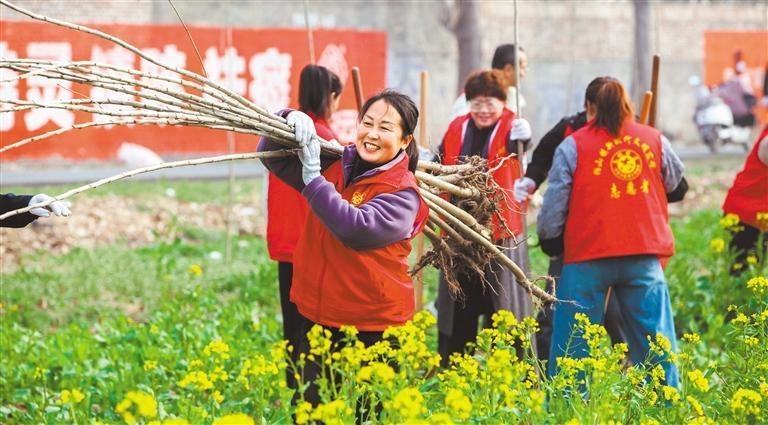 3月11日,河南省焦作市博愛(ài)縣柏山鎮(zhèn)大中里村,志愿者在搬運(yùn)樹(shù)苗,準(zhǔn)備種植。程全攝(中經(jīng)視覺(jué))
