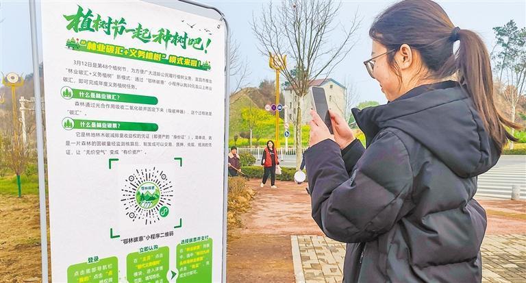 3月10日,湖北省宜昌市秭歸縣市民線(xiàn)上購(gòu)買(mǎi)林業(yè)碳票。當(dāng)?shù)赝瞥觥傲謽I(yè)碳匯+義務(wù)植樹(shù)”模式,讓市民實(shí)現(xiàn)手機(jī)“種碳”。周仕偉攝(中經(jīng)視覺(jué))