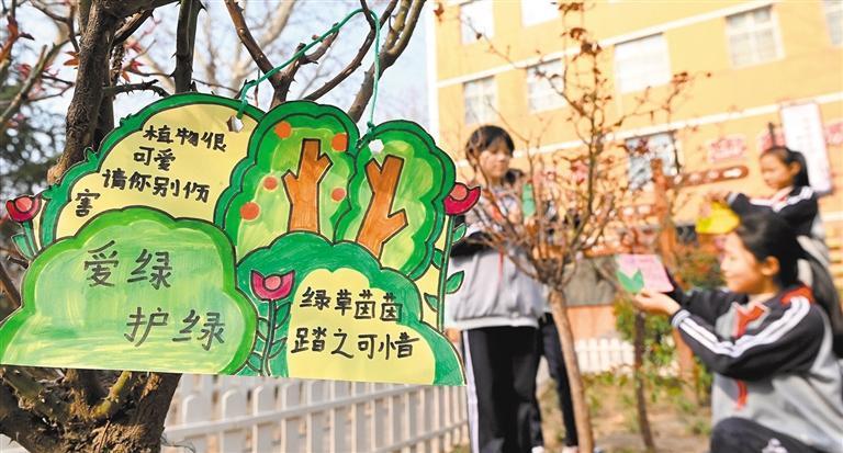 今年3月12日是我國(guó)第48個(gè)植樹(shù)節(jié)。3月12日,河北省邯鄲市復(fù)興區(qū)鐵路小學(xué)學(xué)生在小樹(shù)上掛上心愿卡。郝群英攝(中經(jīng)視覺(jué))