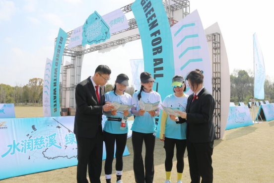 圖為法院干警向參加節(jié)水宣傳健康跑的市民講解水資源保護法律知識
