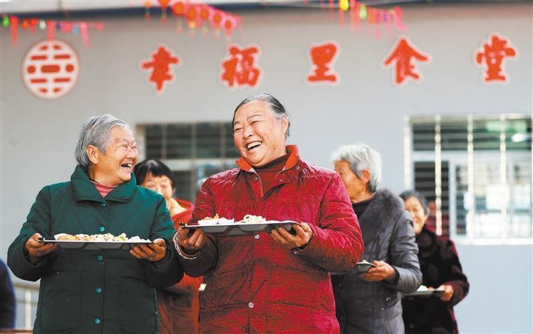 1月15日,老人在湖北省荊門市東寶區(qū)石橋驛鎮(zhèn)上泉村“幸福里食堂”用餐。全國已建近8萬個老年助餐點,每天有300多萬老人就餐。趙平攝(中經(jīng)視覺)