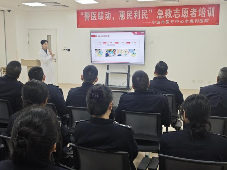 理論環(huán)節(jié)中,李惠利醫(yī)院急救專家團(tuán)隊(duì)用通俗易懂的方式清晰地講解了心肺復(fù)蘇的基本原理、AED的使用方法及海姆利希急救法的操作要點(diǎn)。針對民輔警執(zhí)法過程中常見的創(chuàng)傷、休克等緊急情況,著重強(qiáng)調(diào)了“黃金救援4分鐘”的重要性。