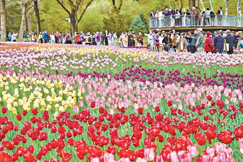 4月13日,國(guó)家植物園推介郁金香花海、碧桃園、海棠園等賞花區(qū)域,吸引眾多市民游客前來(lái)賞花。記者 程功 攝