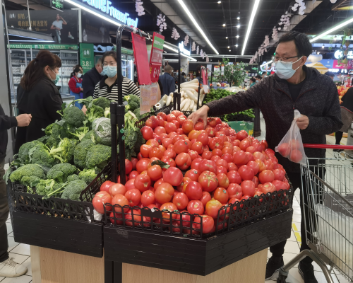 “蔬菜品種豐富,價(jià)格跟平時(shí)差不多。”正在華潤(rùn)蘇果馬群新街店選購(gòu)蔬菜和方便食品的蔡女士表示,特殊時(shí)期有蘇果很讓人放心。門店生鮮區(qū)豬肉、包菜、土豆、西紅柿、芹菜、山藥等家常菜供應(yīng)充足。此外,消殺防護(hù)用品被設(shè)置成專區(qū)陳列,口罩、洗手液、消毒液品類齊全。