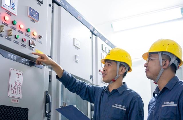 深圳寶安供電局工作人員在欣旺達產(chǎn)業(yè)園配電房檢查設(shè)備運行情況。主辦方供圖