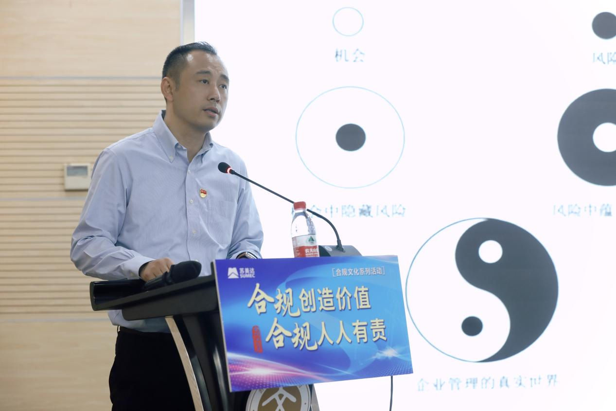 孫淼以《加強企業(yè)合規(guī)管理,推進企業(yè)實現(xiàn)高質(zhì)量發(fā)展》為題,圍繞“什么是合規(guī)”“為什么要合規(guī)”“合規(guī)管理的發(fā)展”“合規(guī)管理的建議”四大部分,為與會人員作了輔導(dǎo)報告。對于蘇美達合規(guī)管理工作,他提出三點建議:
