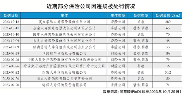 記者注意到,這是保險業(yè)繼中路財產(chǎn)保險股份有限公司(簡稱“中路財險”)收到198萬元“罰單”后又一張“百萬級”罰單。同花順數(shù)據(jù)統(tǒng)計顯示,今年下半年以來,各類主管機(jī)關(guān)對保險公司的違規(guī)行為作出約500次處罰,合計處罰金額超億元。業(yè)內(nèi)專家表示,監(jiān)管部門從重處罰一些存在違規(guī)違法問題的經(jīng)營機(jī)構(gòu),屬于常規(guī)動作,有助于進(jìn)一步規(guī)范保險市場秩序、防范金融風(fēng)險、保護(hù)消費(fèi)者權(quán)益等。