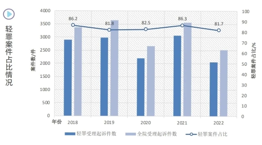 2018年1月至2023年8月,海淀區(qū)檢察院共受理審查起訴輕罪案件14713件18165人,案件數(shù)和人數(shù)分別占全院受理審查起訴案件總數(shù)的82%、77%。