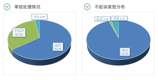 輕罪案件社會危害性較小、罪責輕,犯罪嫌疑人認罪悔過可能性較大。檢察機關(guān)在辦理輕罪案件過程中,更加注重貫徹寬嚴相濟刑事政策精神,全面落實認罪認罰從寬制度,輕罪案件處理趨于寬緩。從認罪認罰從寬制度適用情況看,2018年以來,輕罪案件認罪認罰從寬制度的適用率達 97.4%;從輕罪案件的審結(jié)處理情況來看,2018年至2023年8月,經(jīng)審查作出起訴決定的11852人,起訴率為65.2%;作出不起訴決定5848人,不起訴率為32.2%,其中94.5%為相對不起訴。