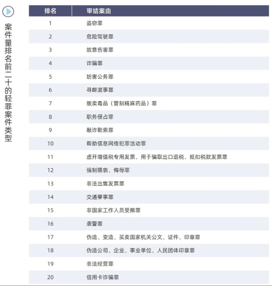 輕罪案件涉案罪名廣泛,涵蓋刑法各個章節(jié),其中以侵犯財產(chǎn)安全、危害交通安全、人身安全以及妨害社會管理秩序類案件居多。近年來,隨著輕罪案件數(shù)量的不斷增長,輕罪案件類型化趨勢日益明顯。結(jié)合海淀區(qū)檢察院研發(fā)的“輕罪治理圖鑒”監(jiān)督模型[2],具體分析如下: