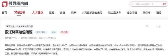 除了被撤銷高新技術企業(yè)資格之外,2023年11月27日,齊河永鋒鋼廠一名員工家屬在人民網“領導留言板”留言稱,永鋒鋼廠搬遷去臨沂臨港,今年3月份齊河本部停產,“我們都是沒法跟著去工作的,一直留在齊河本部,廠里不給簽協(xié)議離職,就是每個月降低薪水,直到上個月按縣城最低標準發(fā)放,一直拖了8個月”,賠償卻要求按前12個月平均工資計算。