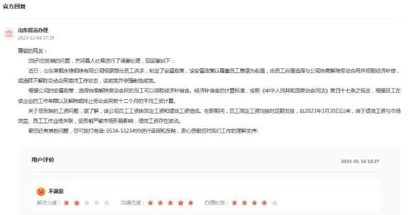對此,名為“山東留言辦理”的ID號12月8日在該條留言下回復稱,齊河縣人社局進行了調查處理:近日,山東萊鋼永鋒鋼鐵有限公司根據(jù)部分員工訴求,制定了安置政策,該安置政策以尊重員工意愿為前提,由員工自愿選擇與公司協(xié)商解除勞動合同并領取經濟補償,或選擇不解除勞動合同維持工作狀態(tài),該政策并非強制性政策。