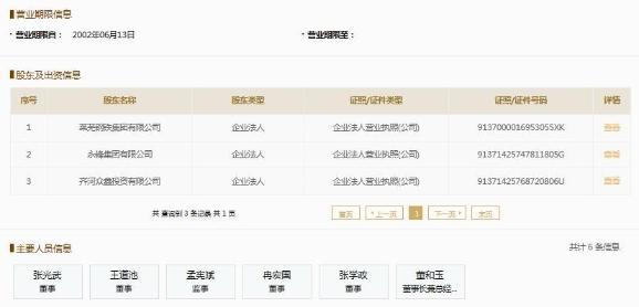 國家企業(yè)信用信息公示系統(tǒng)顯示,山東萊鋼永鋒鋼鐵有限公司成立于2002年,注冊資本3000006萬元人民幣,法定代表人董和玉,三家股東為萊蕪鋼鐵集團有限公司、永鋒集團有限公司及齊河眾鑫投資有限公司。
