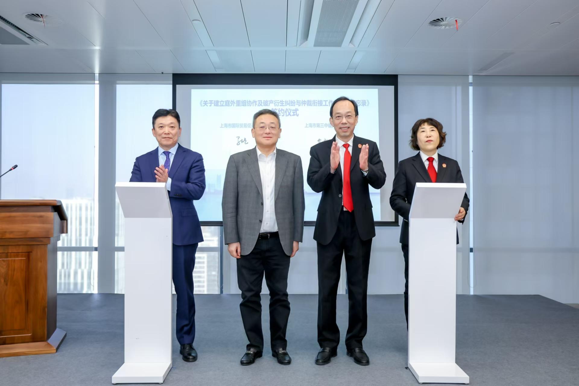 上海多元化解破產(chǎn)案件邁出新的一步,今后將在企業(yè)庭外重組和破產(chǎn)衍生糾紛破產(chǎn)案件中引入商事仲裁和調(diào)解機(jī)制。12月17日,由上海市國(guó)際貿(mào)易促進(jìn)委員會(huì)與上海市第三中級(jí)人民法院主辦,上海國(guó)際經(jīng)濟(jì)貿(mào)易仲裁委員會(huì)(上海國(guó)際仲裁中心)、上海貿(mào)促國(guó)際商事調(diào)解中心承辦的《關(guān)于建立庭外重組協(xié)作及破產(chǎn)衍生糾紛與仲裁銜接工作機(jī)制的備忘錄》(以下簡(jiǎn)稱《備忘錄》)簽約儀式暨法治助力營(yíng)商環(huán)境優(yōu)化專題研討會(huì)在上海國(guó)際爭(zhēng)議解決中心成功舉辦。