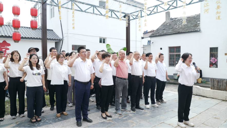紅色“騎”跡,不僅是一次地理上的追尋,更是一次深刻的精神回溯?;顒幼詈?,在場全體黨員莊嚴(yán)重溫入黨誓詞,鏗鏘誓言在研學(xué)館外回響,彰顯了六郎鎮(zhèn)黨員干部賡續(xù)紅色血脈、永葆政治本色的堅定決心。