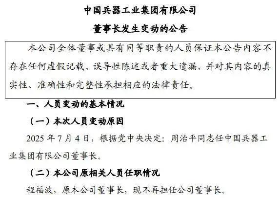 此前,兵工集團(tuán)原董事長(zhǎng)、黨組書記程福波已調(diào)任中國航空工業(yè)集團(tuán)有限公司董事長(zhǎng)、黨組書記,這一調(diào)動(dòng)使得兵工集團(tuán)董事長(zhǎng)職位空缺,周治平的接任填補(bǔ)了這一關(guān)鍵崗位。