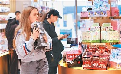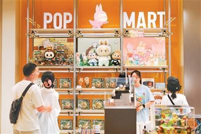 在重慶市渝中區(qū)來(lái)福士商場(chǎng)的泡泡瑪特門店,市民選購(gòu)相關(guān)產(chǎn)品。?孫凱芳攝(人民圖片)