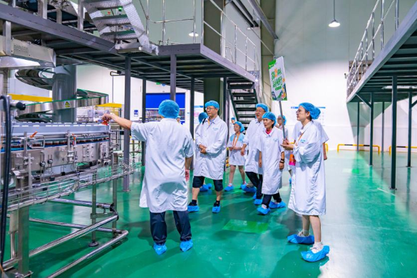在生產(chǎn)車間,各類先進(jìn)生產(chǎn)線有序運(yùn)轉(zhuǎn),展現(xiàn)出現(xiàn)代化飲品生產(chǎn)的嚴(yán)謹(jǐn)與高效。工作人員詳細(xì)介紹了“潤家”飲料從原料生產(chǎn)、運(yùn)輸,到配方研發(fā)、灌裝生產(chǎn)的全流程品控環(huán)節(jié)。從優(yōu)質(zhì)原料的嚴(yán)格篩選,到運(yùn)輸過程中的保鮮措施,再到配方研發(fā)時(shí)對健康元素的精準(zhǔn)把控,以及超高溫滅菌黑科技、全程無菌灌裝、多道質(zhì)檢程序,每一個(gè)細(xì)節(jié)都體現(xiàn)著對飲品品質(zhì)的極致追求。
