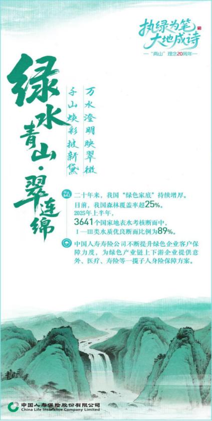 青山鋪卷,金融作筆;執(zhí)筆為綠,大地成詩。在奔赴“雙碳”目標(biāo)的壯闊征途上,中國人壽正以中國式ESG的生動實踐,為全球可持續(xù)發(fā)展貢獻(xiàn)東方智慧,書寫著不負(fù)綠水青山的時代新篇。