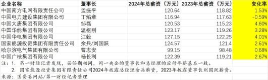 其中,中國大唐集團、中國華電集團和中國華能集團董事長的總薪資漲幅領(lǐng)跑,同比2023年分別上漲4.60%、4.01%和3.28%。