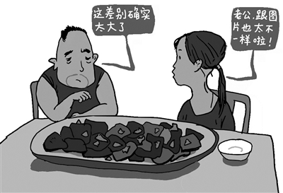 紅彤彤的烤饅頭夾龍蝦、焦褐色的炸肥腸、金燦燦的菠蘿飯……看到這些美食圖片,來自天津市河?xùn)|區(qū)的鄒楷不但沒有“打卡”的欲望,反而有點(diǎn)反胃,因?yàn)楦唢柡投鹊纳首屖澄锟瓷先ヌ倭恕:袜u楷一樣,對美食宣傳過度現(xiàn)象不理解的人不在少數(shù)。近日在多個(gè)美食推薦平臺(tái)上,有不少消費(fèi)者吐槽,其被宣傳圖片或者文案吸引,結(jié)果吃到的食物與圖文嚴(yán)重不符。(9月20日《法治日報(bào)》)